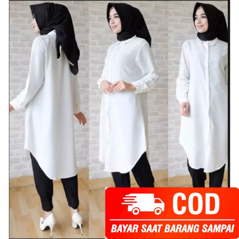 kemeja tunik putih polos new fashion terbaru Shopee Sumber : shopee.co.id